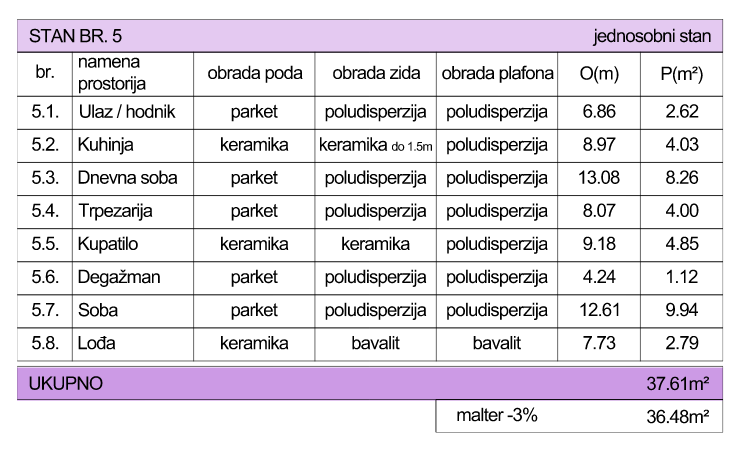 II sprat – br.5 / III sprat – br.10 / IV sprat – br. 15/ V sprat - br. 20 - 4 stana