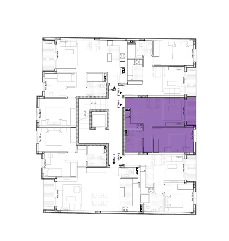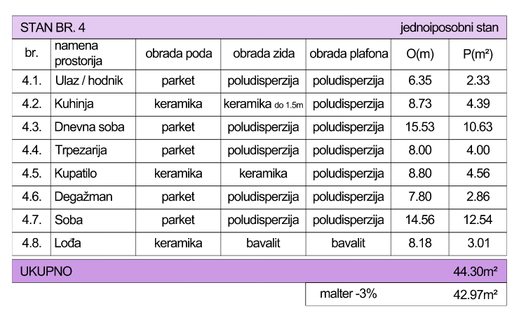 II sprat – br.4 / III sprat – br.9 / IV sprat – br. 14 / V sprat - br. 19 - 4 stana