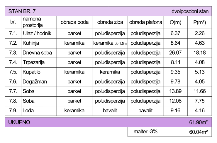 III sprat – br.7 / IV sprat – br. 12 / V sprat - br. 17 - 2 stana